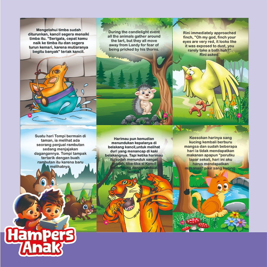 PAKET ISI 4 BUKU CERITA DONGENG ANAK FABEL BILINGUAL FULL COLOUR, 2 BAHASA / SJ