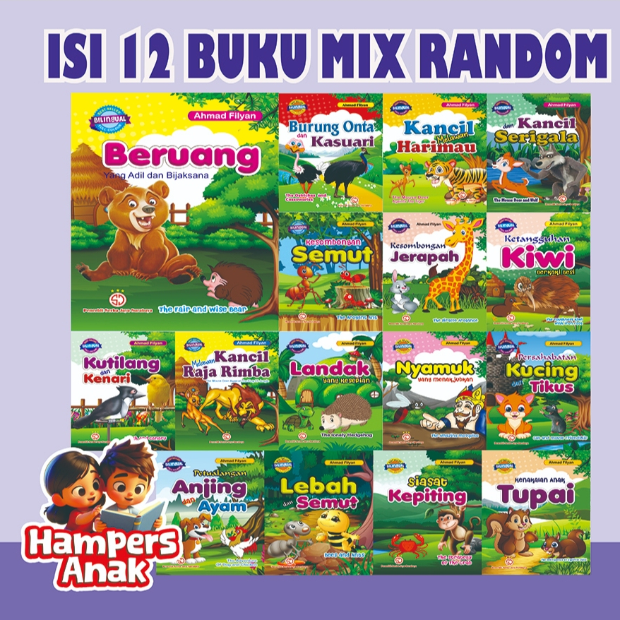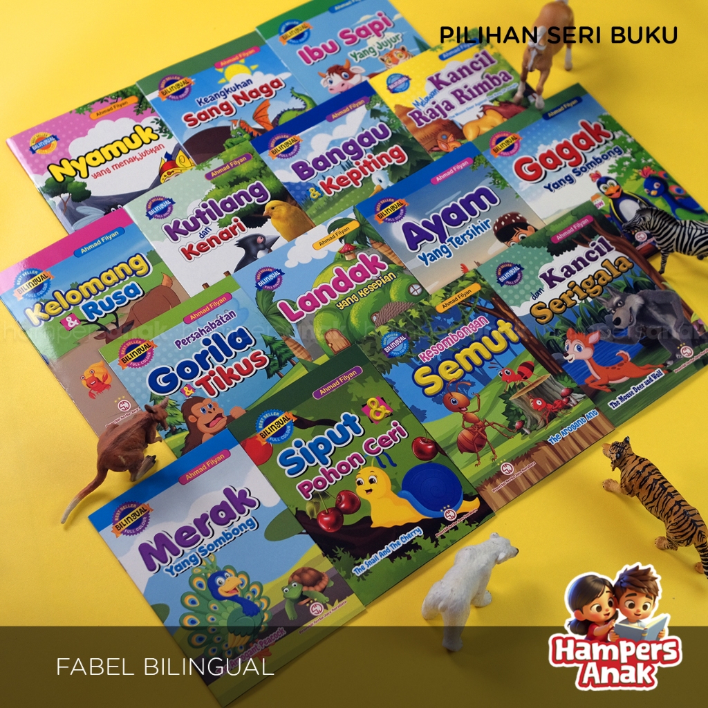 PAKET ISI ( 4,6,8,10,12 ) BUKU CERITA DONGENG ANAK FABEL BILINGUAL FULL COLOUR, 2 BAHASA / SERBA JAYA