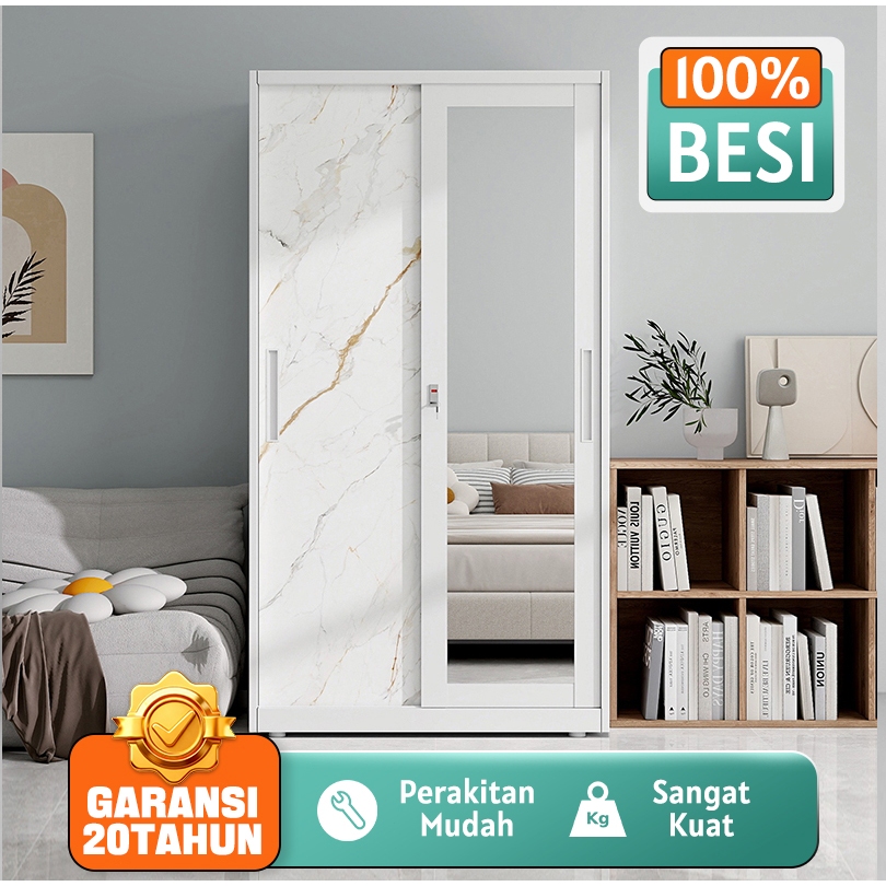 Lemari Pakaian Besi 2 Pintu Sliding Jumbo Lemari Geser Cetak Lemari Pakaian Dengan Cermin