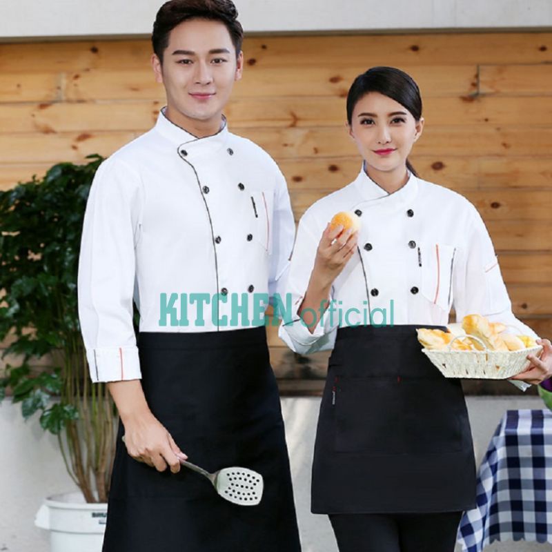 Kitchen.Official Baju Kameja Jacket Koki Chef Lengan Panjang Unisex Pria Wanita