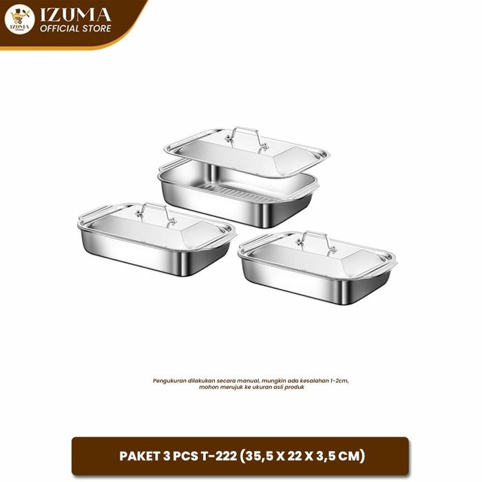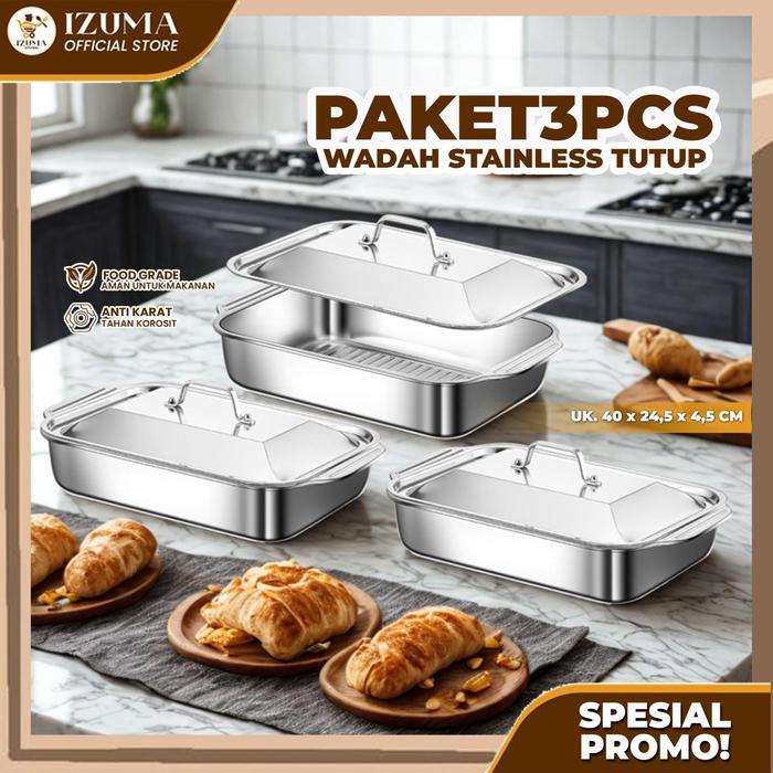 [IZUMA READY] PAKET PRASMANAN 3PCS FULL TUTUP PRASMANAN STAINLESS / TEMPAT WADAH SAJI MAKANAN KOTAK SET STAINLESS STEEL - 35CM22CM4.3CM