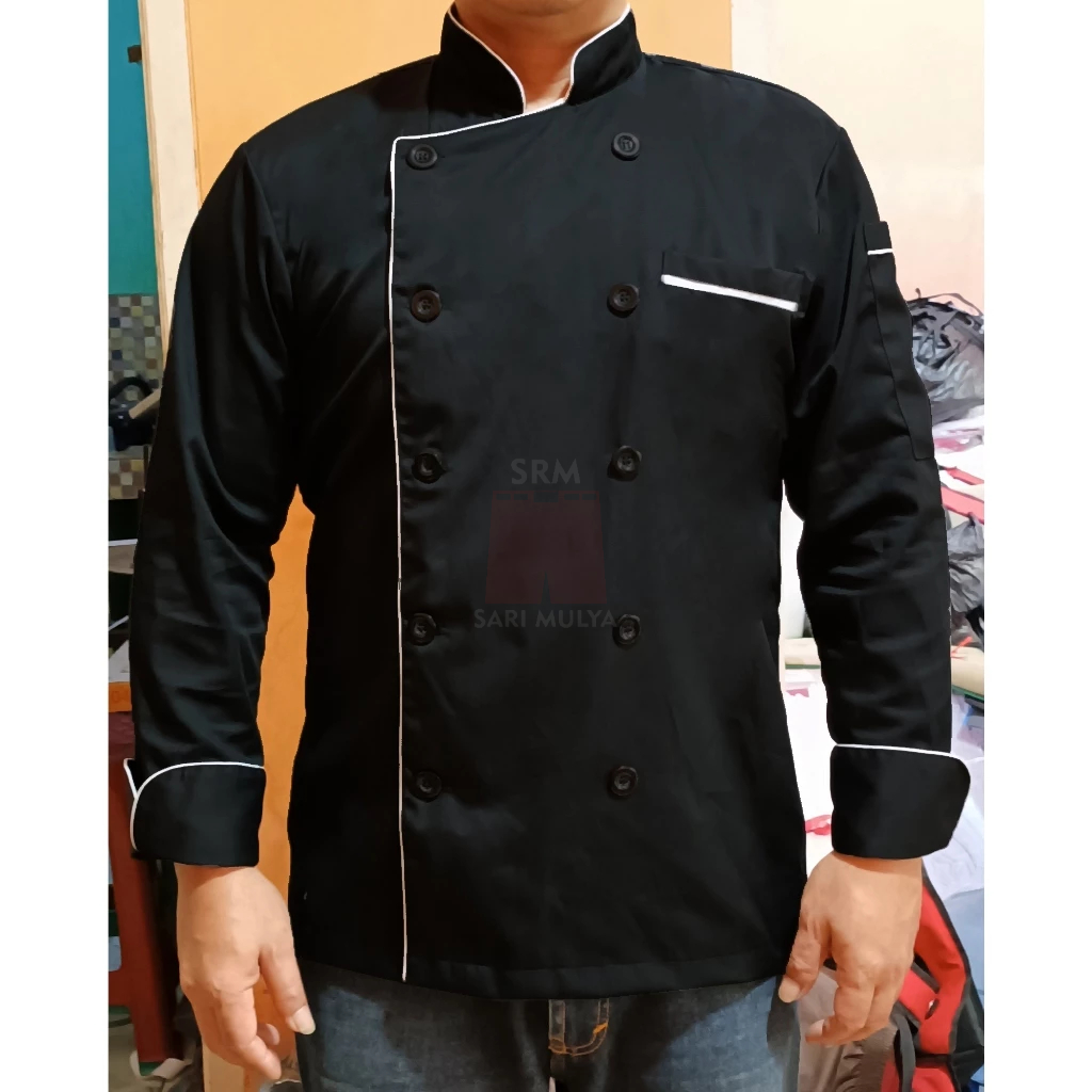 Srm Baju Koki / Chef Work Lis Body Fit Unisex Bahan Drill Uk Size