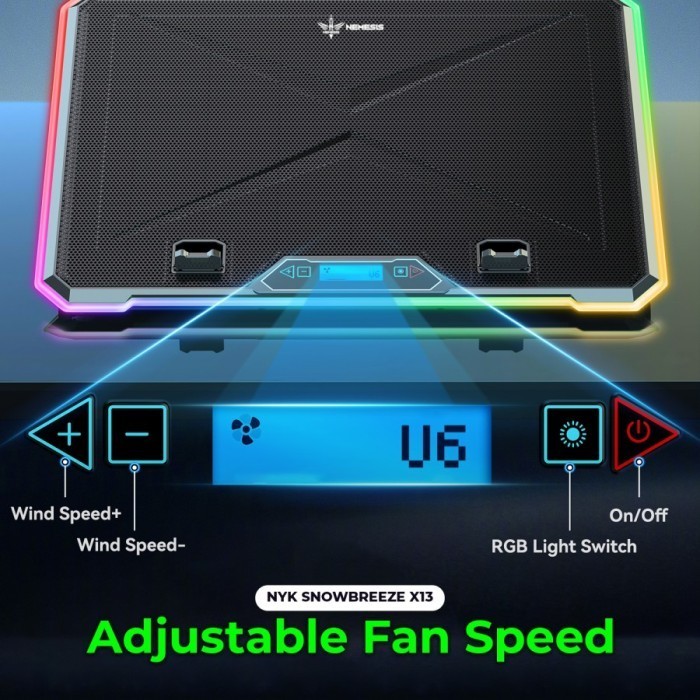 NYK Nemesis Snowbreeze X13 X-13 RGB Cooling Pad 13 Fan with Digital Display and Phone Holder Coolingpad X 13