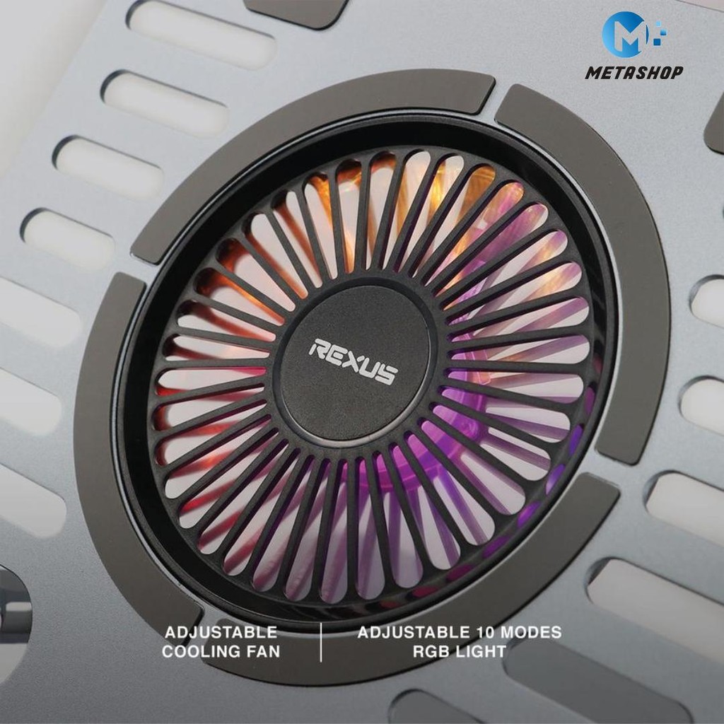 REXUS FP04 Decha Frost Stand Laptop Cooler Fan RGB Alumunium Portabel Kipas Kuat Rotasi 360° Desain Stylish dan Ergonomi