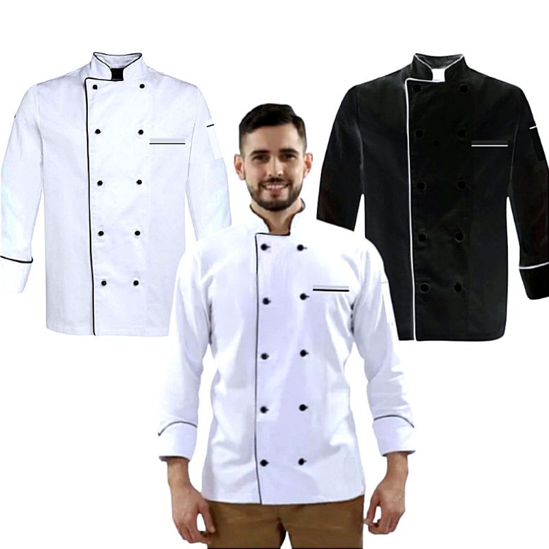 Kemeja Kerja Baju Koki Jacket Chef Lengan Panjang Pria Wanita