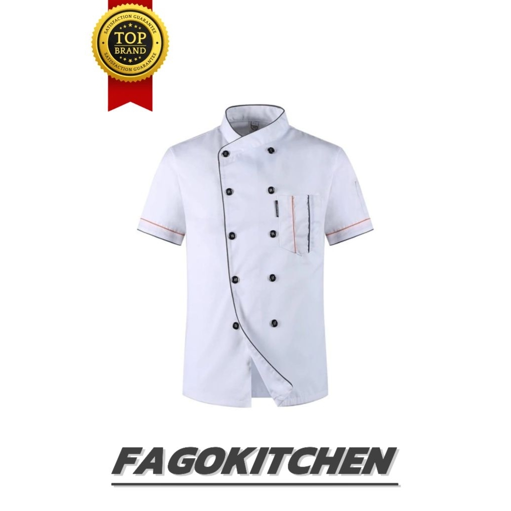 Chef jacket MDR kemeja seragam koki lengan pendek baju masak unisex