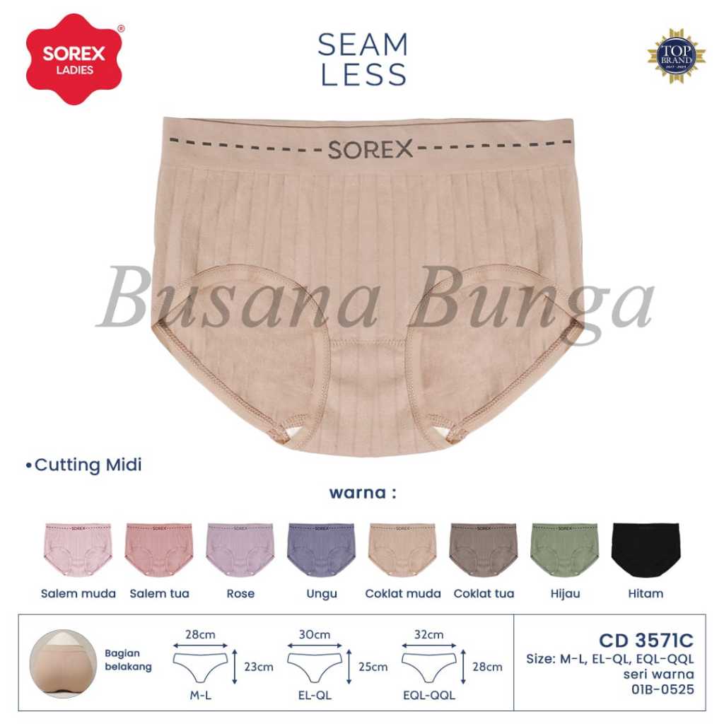 SOREX x Busana Bunga Special Edition (3pc, 6pc, 12pc) CD/Celana Dalam Wanita Dewasa Sorex 3571C Rajut Midi Elastis Lembu