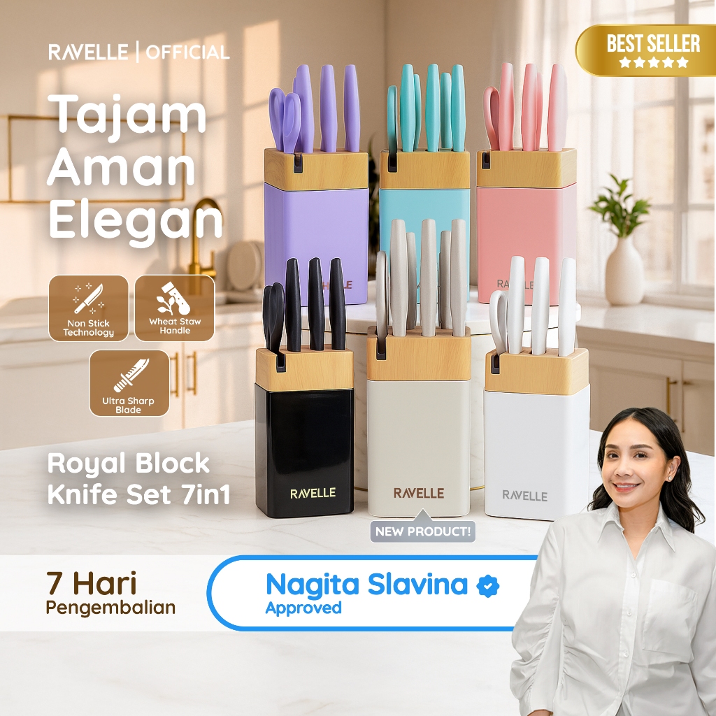Ravelle Pisau Dapur Anti Lengket 7 In 1 Set - Royal Block Knife Set