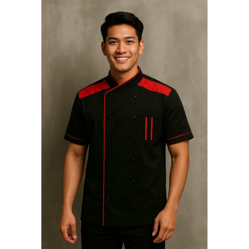 Chef Coat / Baju Koki Model Classic Flame Kerah Mandarin
