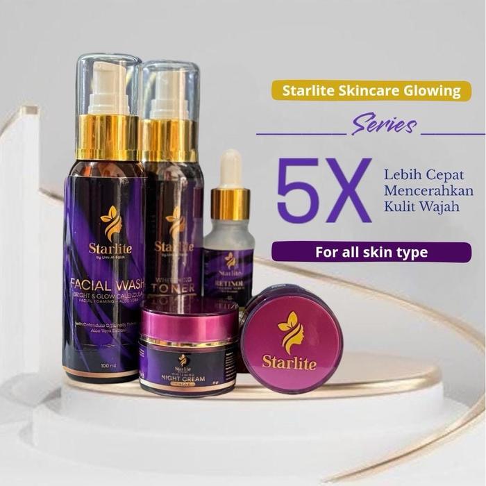 Paket Retinol Glowing Series Starlite By Umi Alfatih ( Facial wash Toner serum Retinol Day cream Night Cream ) BPOM RI