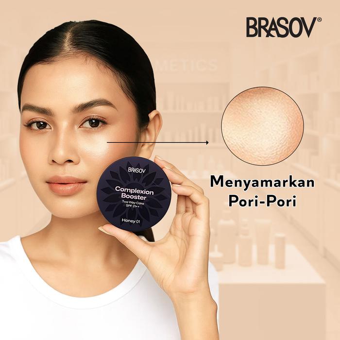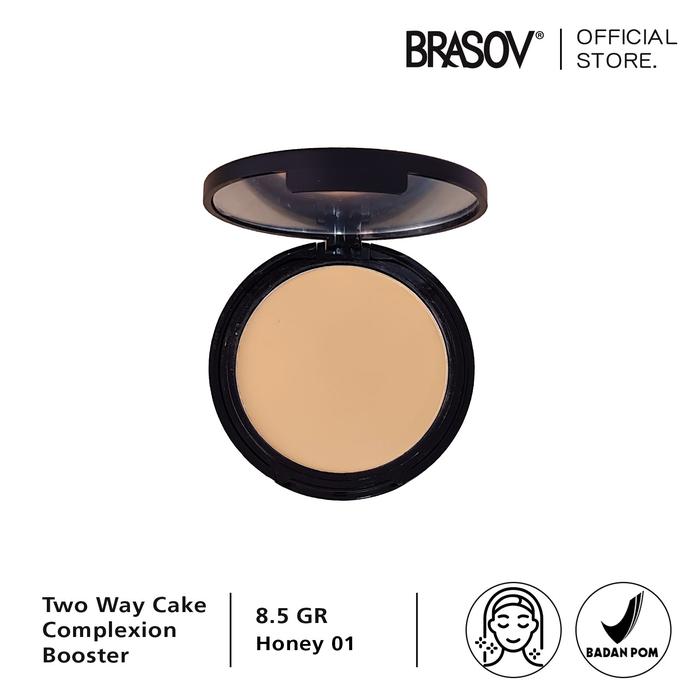 BRASOV Complexion Booster Two Way Cake SPF 21++ Bedak Padat BPOM 8.5gr Pressed Powder Makeup XX-CT - Almond 02