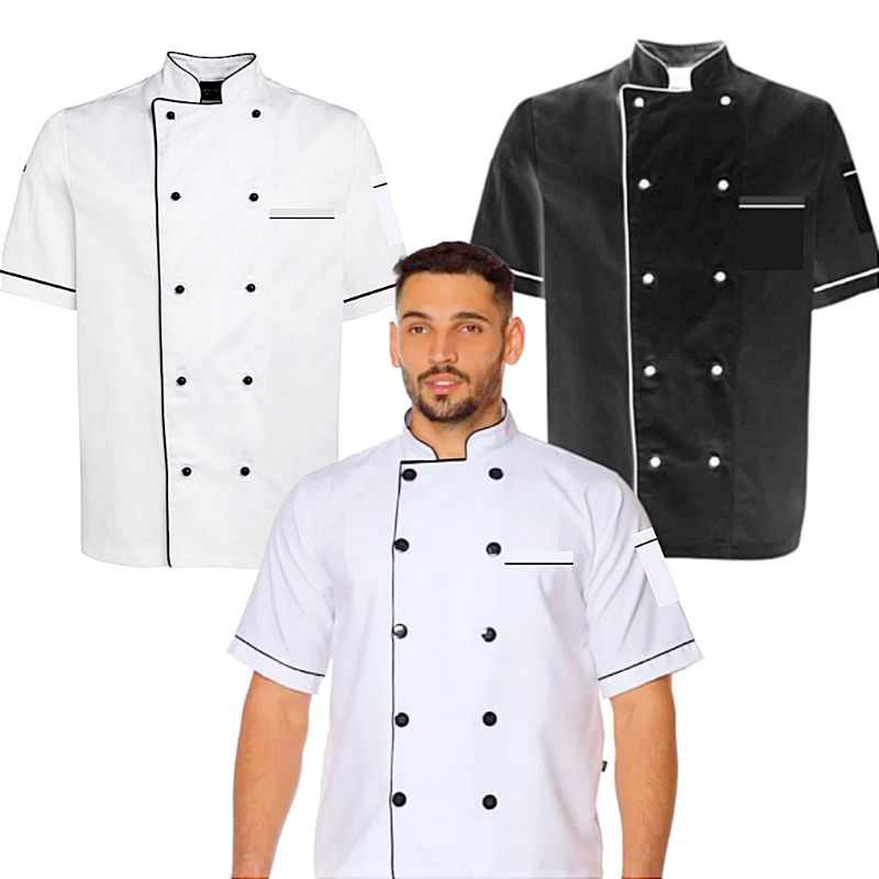 Baju Koki Chef Jacket Lengan Pendek Seragam Koki Unisex Pria Wanita