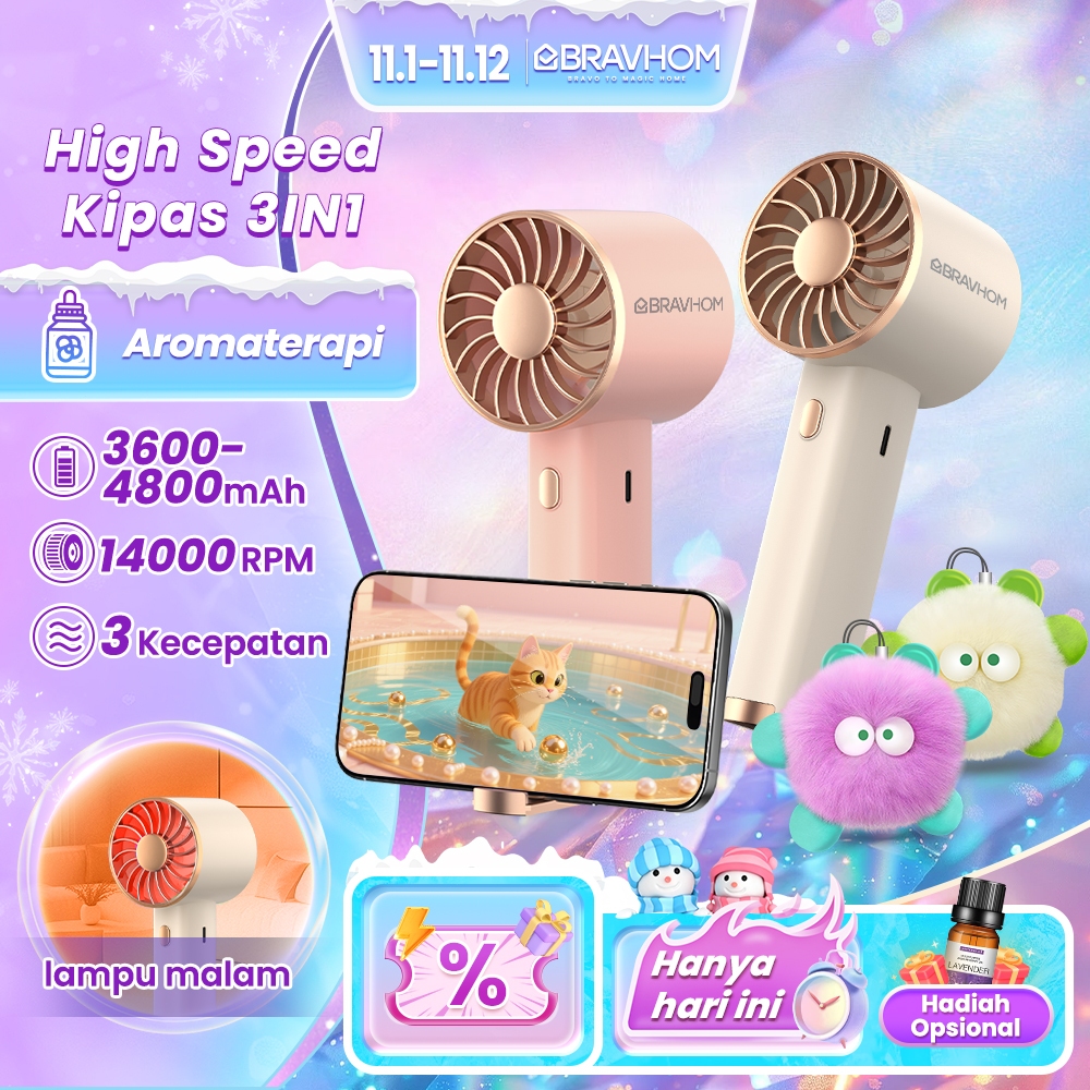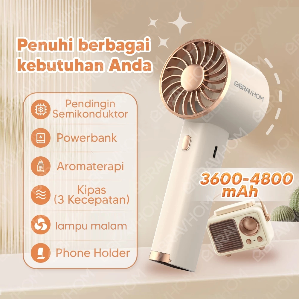 Bravhom Kipas Angin Mini 3In1 Powerbank Aromaterapi 3 Kecepatan Kipas Portable Dan Lampu Fn16