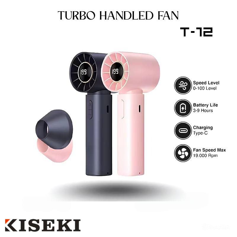 Kiseki Turbo Digital Minifan T-12 Kipas Angin Mini Portable 100 Speed Control Digital Display