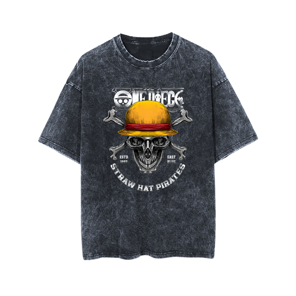 Korean Street T-shirt Lengan Pendek Kaos Washed Black Oversize Korean Premium 100% Katun | Pirates Style Pria Wanita Ker