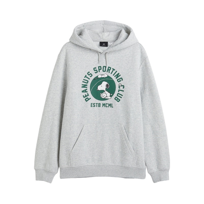 Hoodie Unisex HM Sablon Peanuts Sporting Club Grey Abu, Flecee Katun