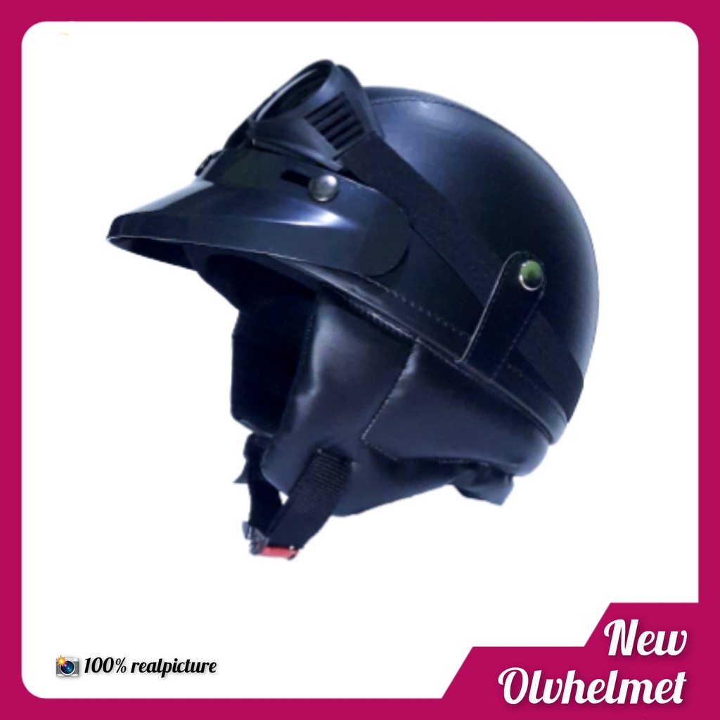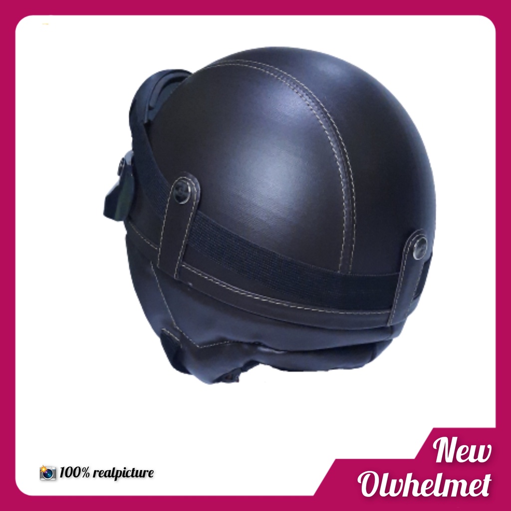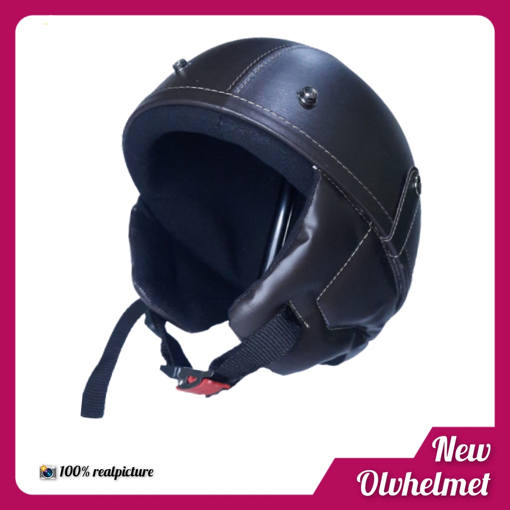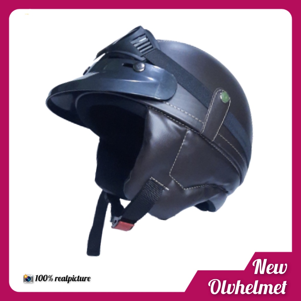 HELM CHIP RETRO PRIA WANITA HITAM COKLAT / HELM CHIP RETRO KULIT FREE PACKING