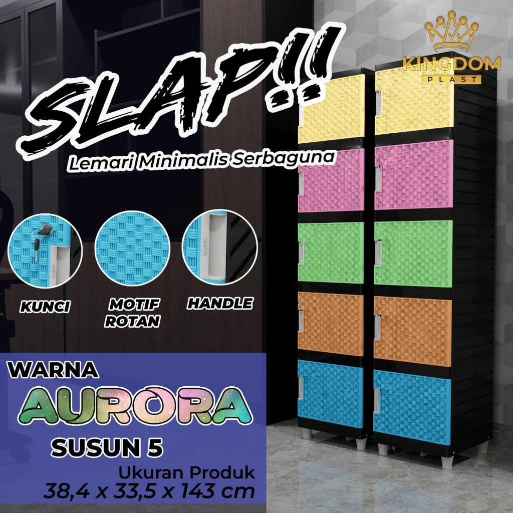 Lemari Plastik Pakaian Serbaguna Minimalis Slap Kingdom Zebra FULL KUNCI PUTIH KUNCI AURORA RAINBOW