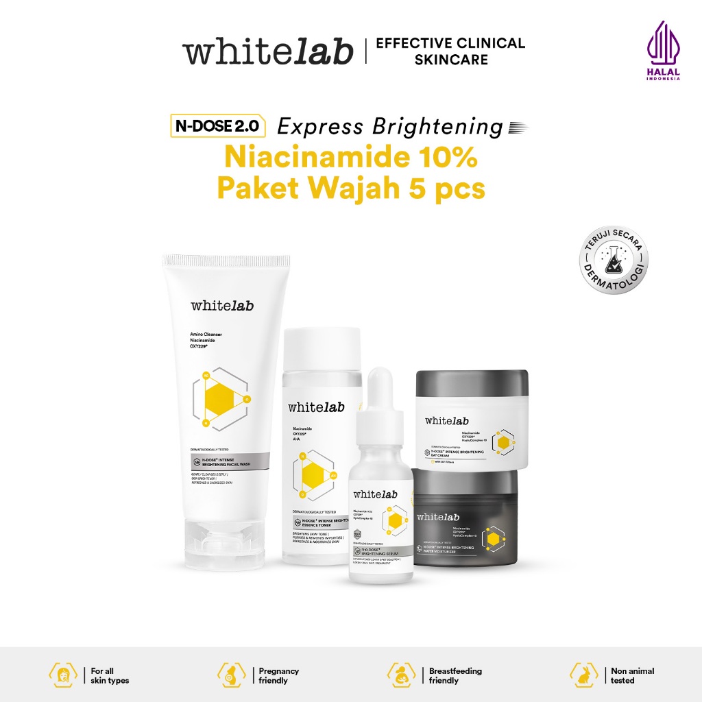 Paket Wajah Brightening Niacinamide Facial Wash, Toner, Serum, Day & Night Moisturizer - 5 pcs N-Dose+ 2.0 Skincare