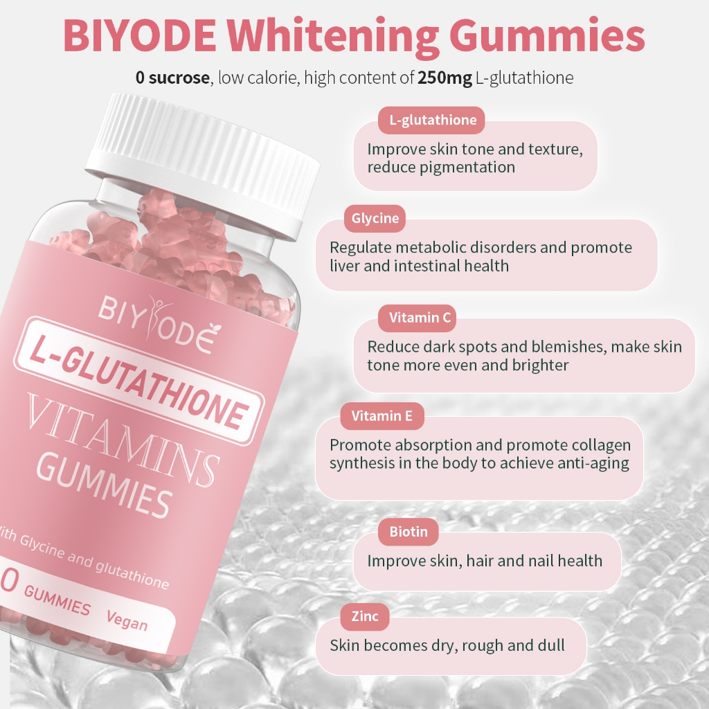 Halal Biyode Glutathione Gummies Collagen/Beauty Collagen Vitamins Anti-Aging Whitening Skin/Permen Jeli Glu