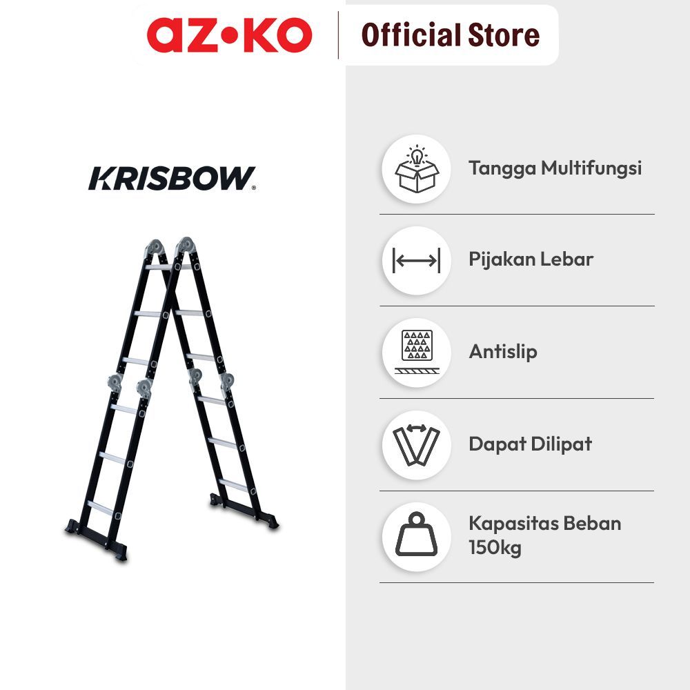 AZKO Krisbow 3 mtr Tangga Lipat Aluminium Steel 4x3 Step - Hitam Multifunction Household Ladder Peralatan Rumah Tangga B