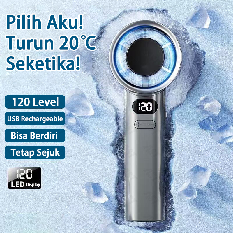 Kipas Angin Portable 120 Gigi Turbo Mini Tangan Genggam Mini Fan Tampilan Daya Lcd