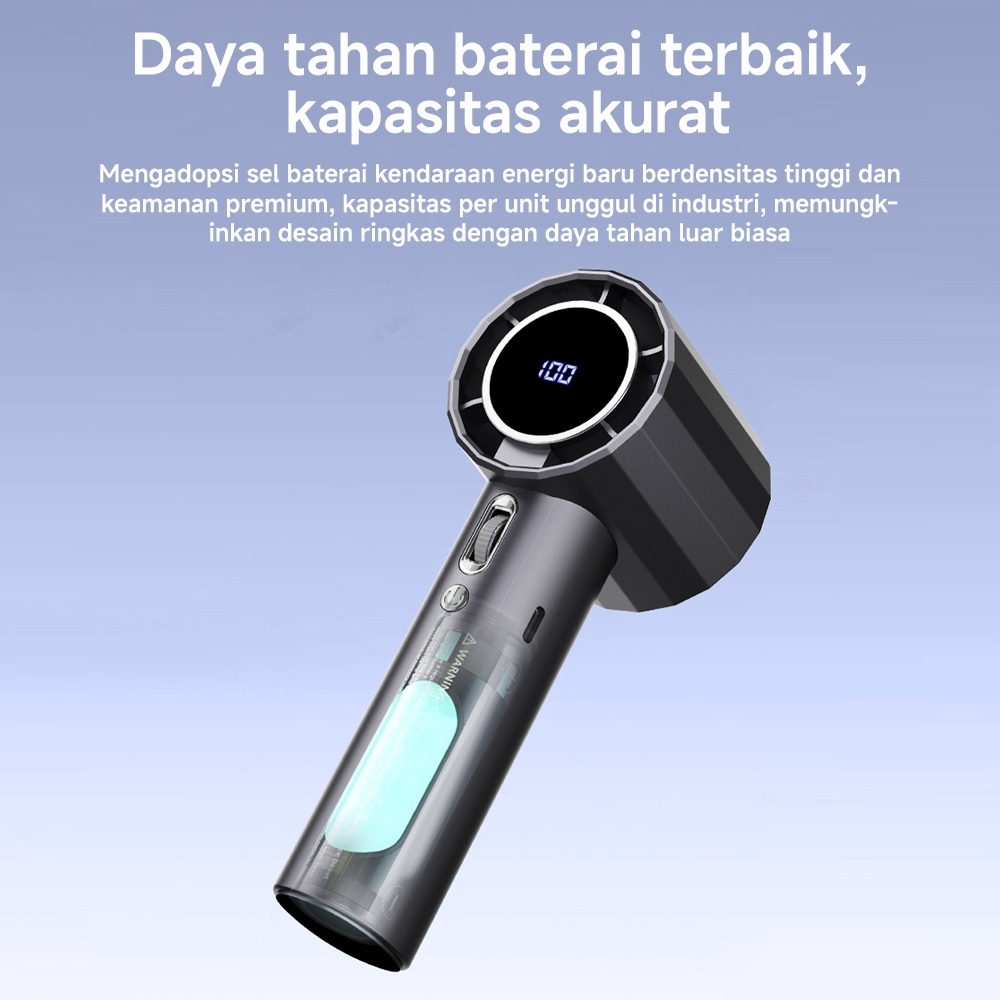 Kipas Angin Turbo 20000Mah Strong Wind 100 Gear - Portable Usb, Tampilan Led, Bonus Tali Leher & Kabel, Tahan 15 Jam Unt