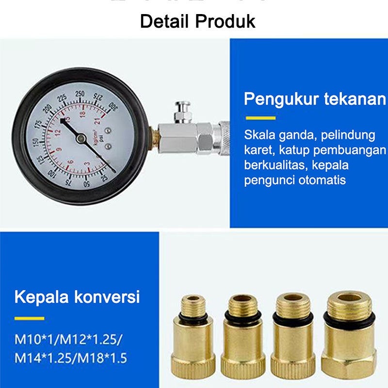 8Pcs Set Tester Kompresi Mobil Motor Alat Pengukur Tekanan Gas