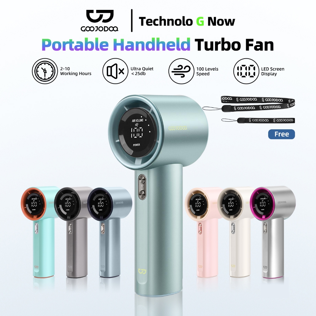Goojodoq Gfs001 Kipas Turbo 100 Gear Wind Hight-Speed Kipas Angin Digital Display Kipas Tangan