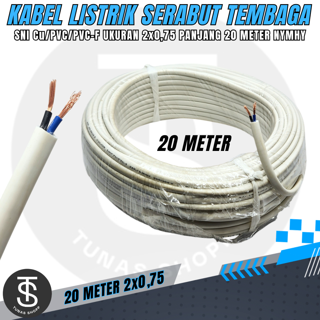Kabel Listrik Serabut Ecer 20 METER / Kabel Serabut Tembaga NYMHY 2x0.75 Fleksibel Aman Tahan Lama SNI / Kabel Listrik S