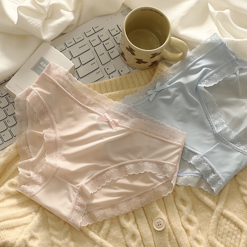 CD/Celana Dalam Wanita Renda Transparan Celana Dalam CD Wanita Bahan Sutra Motif Pita Polos Pinggiran Lace Halus Dingin