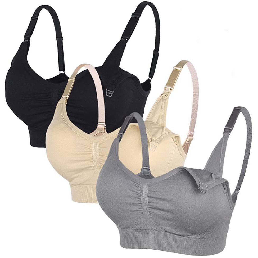 Bra Wanita Menyusui Kancing Depan Tanpa Kawat 3pcs Bahan Katun