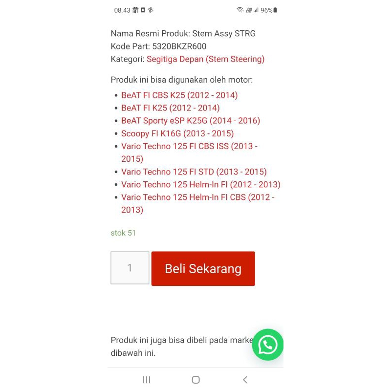 segitiga stang bawah sub steering stir beat fi k25 beat pop vario125 techno scoopy fi old k16
