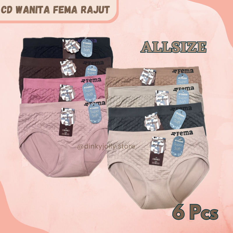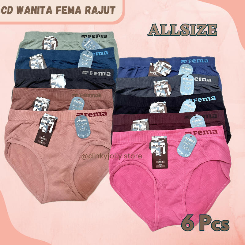 Fema Celana Dalam Wanita 6 Pcs Tipe 8116 / CD Remaja Dewasa Bahan Rajut Super Soft / Sempak / Celqna / Cawet / Pakaian D