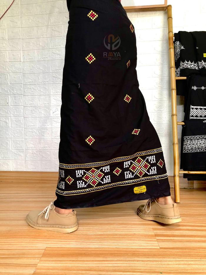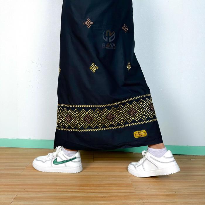SARUNG BORDIR WADIMOR MOTIF ARABIC BORDIR DEWASA KATUN LEMBUT PINTU ACEH MUSLIM PRIA HITAM NAVY SONGKET TIMBUL PUTIH SANTRI - ARABIC1-HITAM-g0ldd
