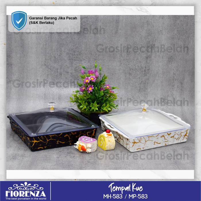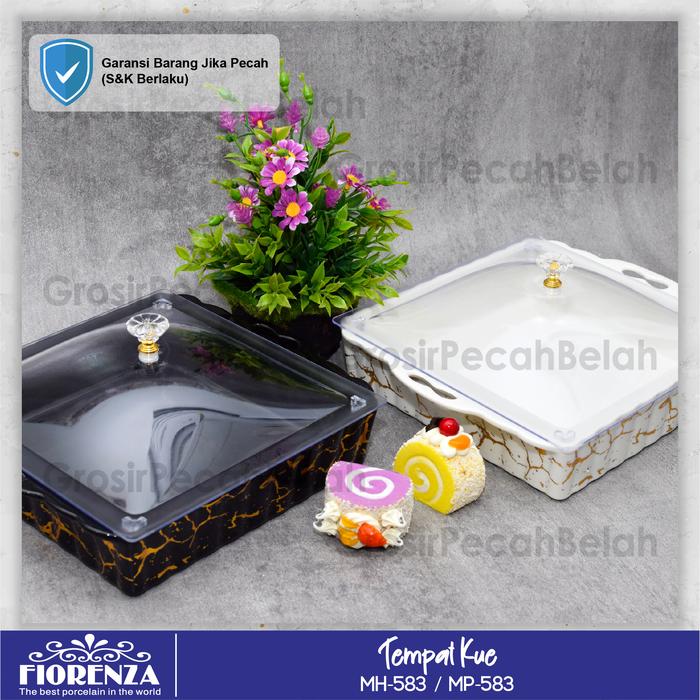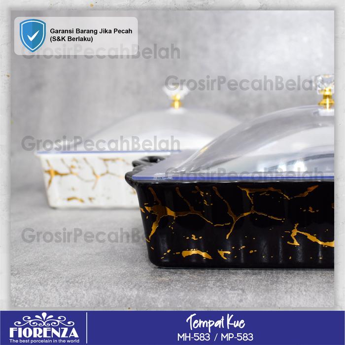 TEMPAT WADAH KUE PERSEGI KERAMIK MOTIF MARBLE FIORENZA 583 - PUTIH