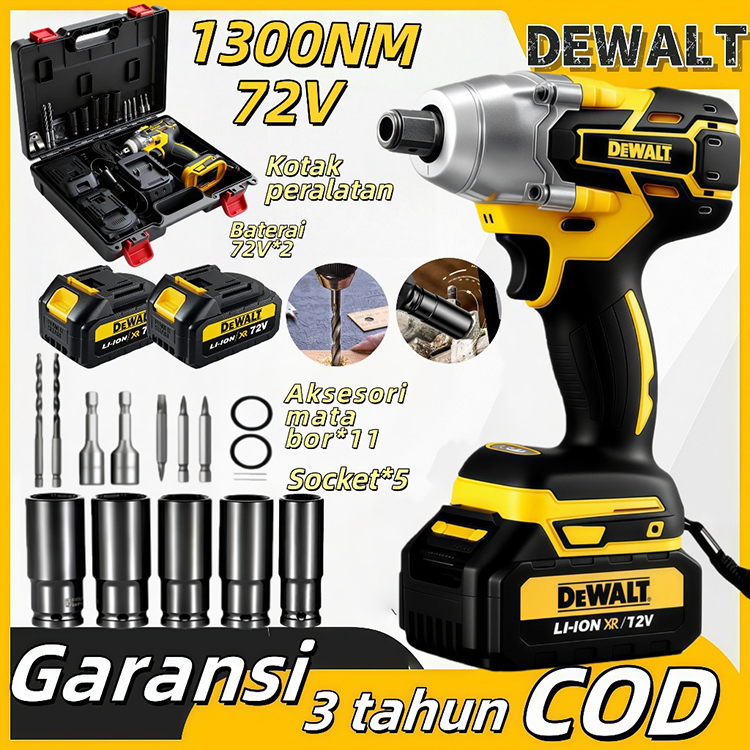 DEWALT 1300NM/72V Kunci Impact Wrench Tanpa Kabel Cordless Bor Impact Serbaguna dengan Baterai untuk Baut Mobil