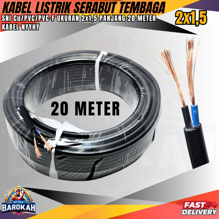 Kabel NYYHY / Kabel Serabut Tembaga 20 METER / Kabel Listrik Serabut Tembaga 2x1.5 / Kabel Serabut Fleksibel PVC Kuat Ta