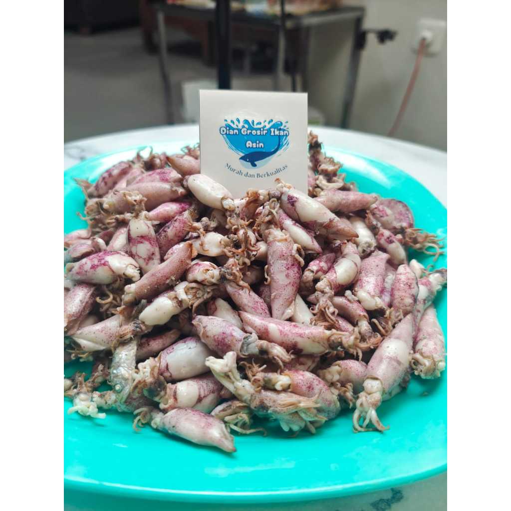 Grosir Ikan Asin Dian - Ikan Asin Cumi Sontong Ukuran kecil Berat 500gram(cumi rebus) - Asin Cumi Segar Kemasan