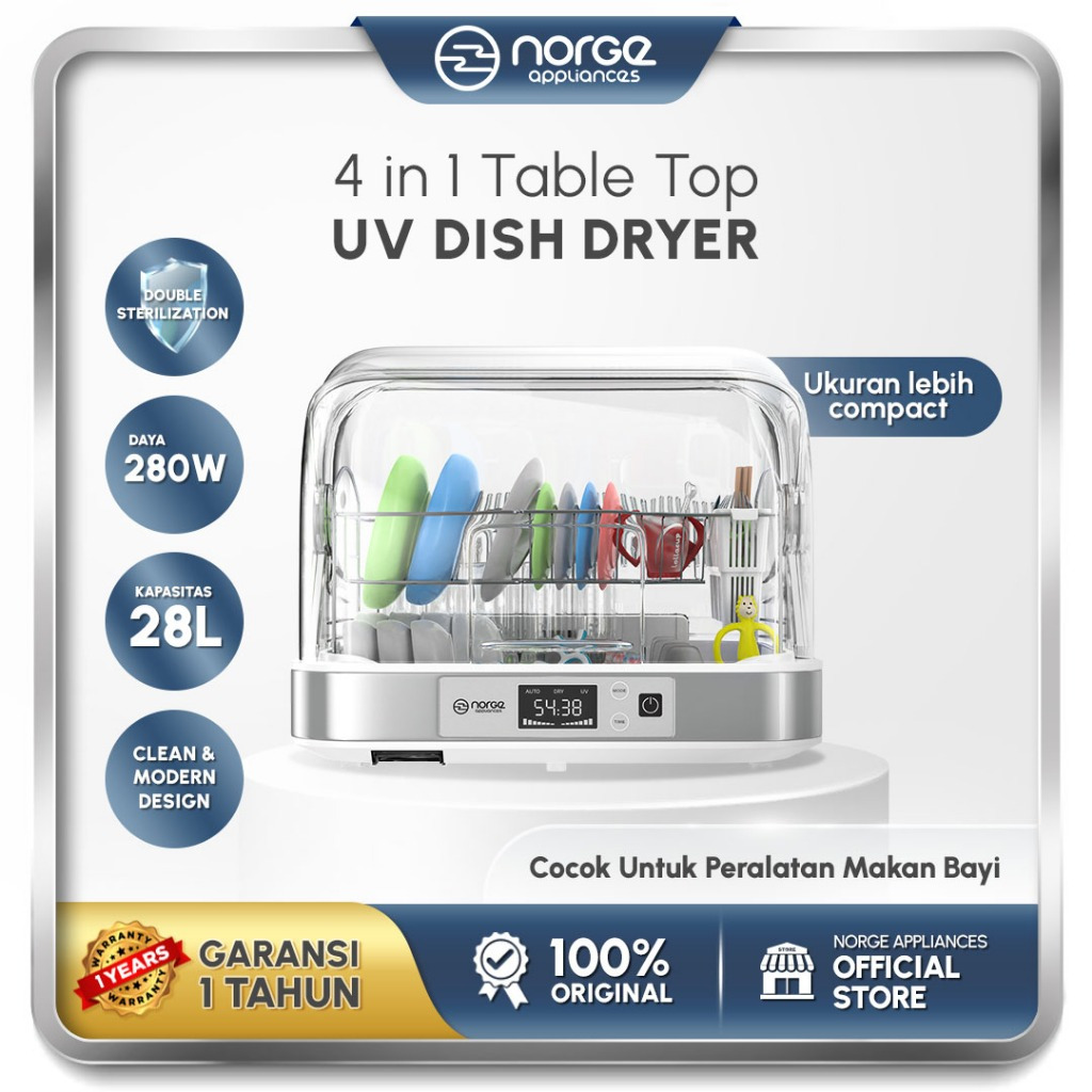 Makassar - Norge 4 in 1 Table-top UV Dish Dryer 28L 280W (NG-DD28UV) / Sterilizer / Rak Piring / Pengering Piring