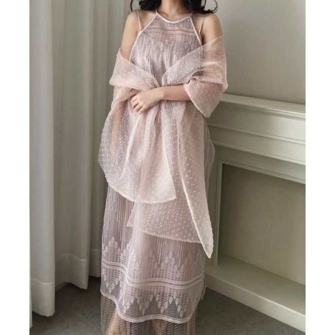 Selendang Organza Scraft Aksesoris Gaun Wanita Gaun Prewedding Scraft Organza Dot