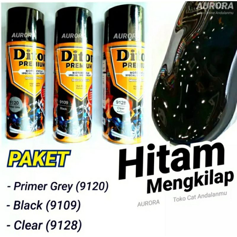 PAKET LENGKAP Cat Pilok Diton Premium 9120 Primer Grey Epoxy + 9109 Black Hitam Glossy + 9128 Clear Gloss 400ml
