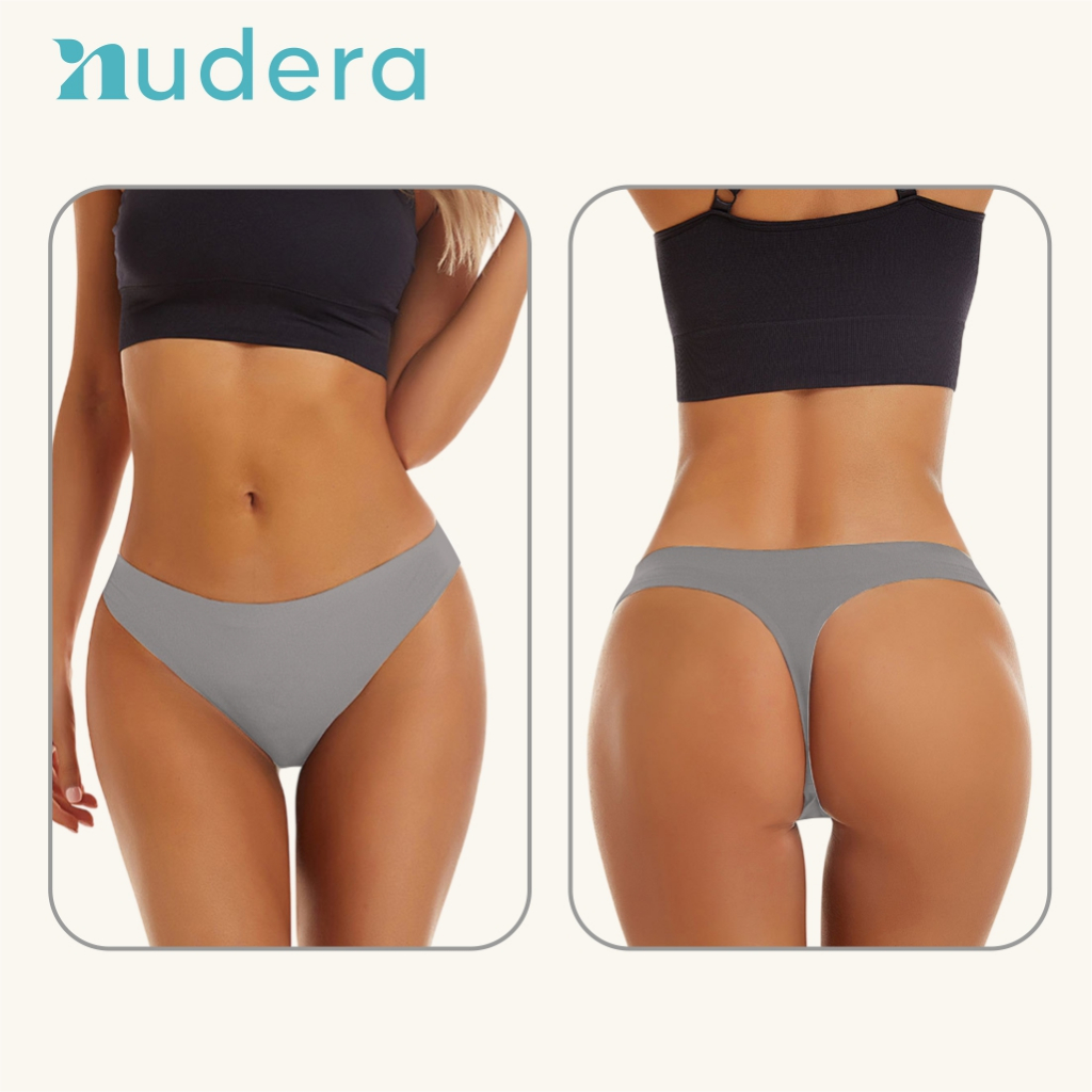 NUDERA Celana Dalam Wanita Gstring Seamless Tanpa Jahitan Sexy, Nyaman, Elastis, Lembut, Anti Jiplak Hitam, Abu Abu M L