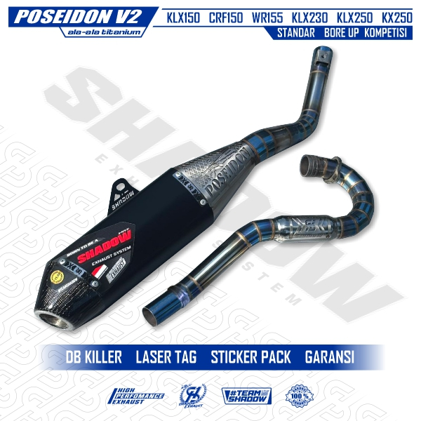 Poseidon V2 Black Leher Titanium Look Knalpot CRF150 KLX150 WR155 KLXTIGER Shadow Exhaust