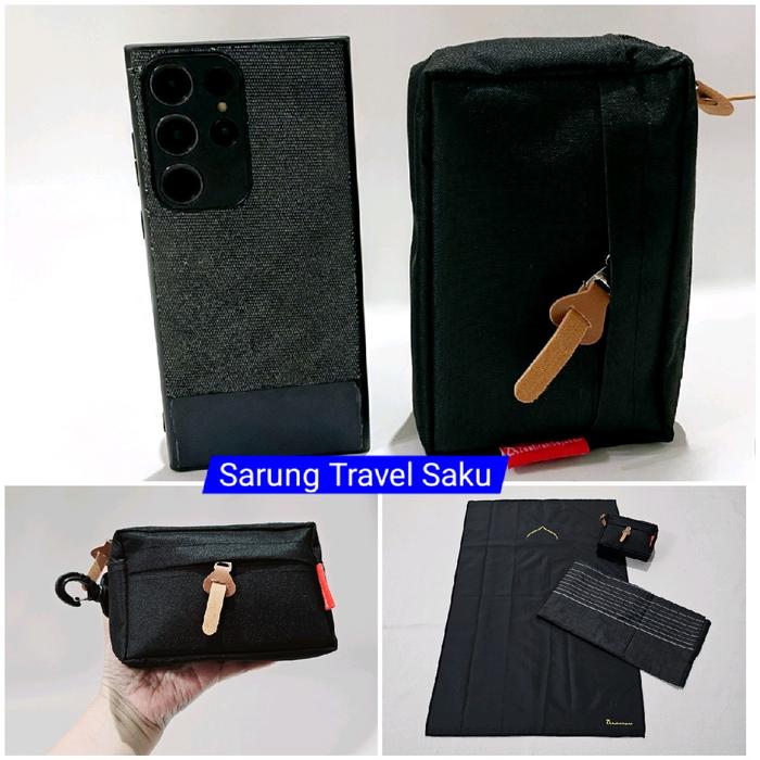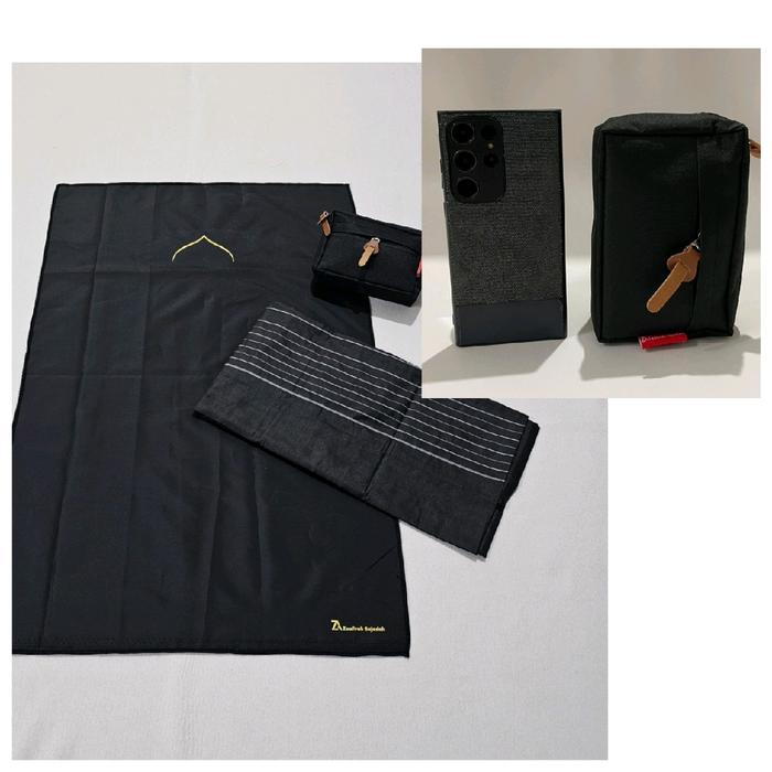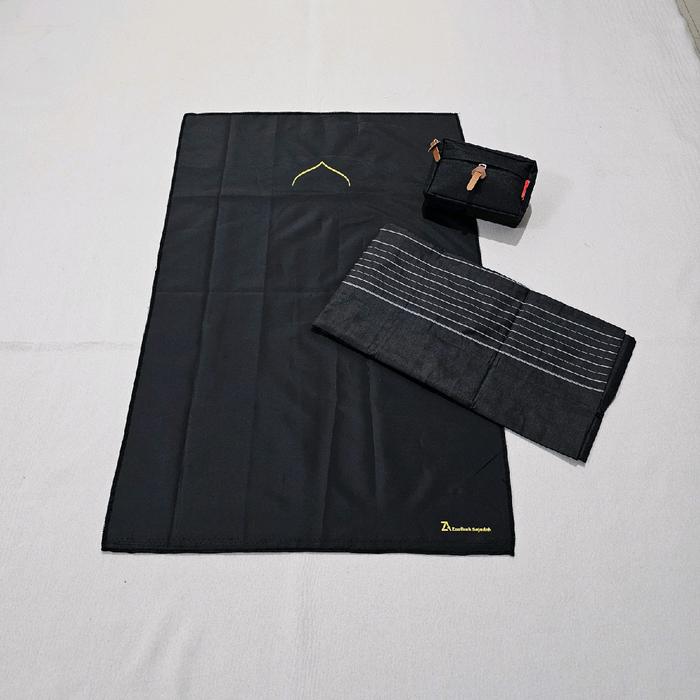 SARUNG TRAVEL SHOLAT GENGGAM DAN SAJADAH TRAVEL WATERPROOF DENGAN POUCH KANVAS KECIL MUSLIM DEWASA SEMUA MUSIM g0ldd. - HITAM
