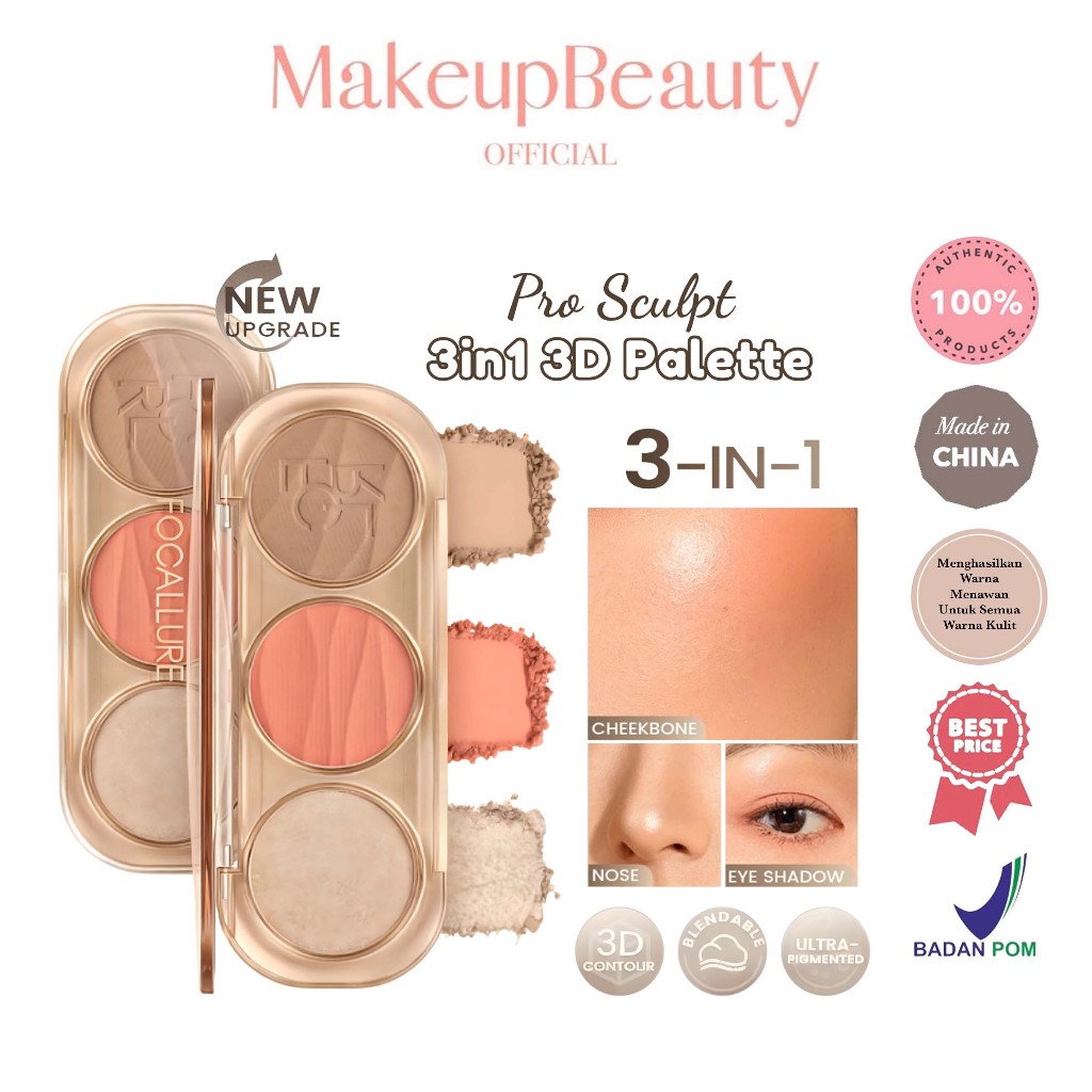 FOCALLURE (FA-F45) Pro-Sculpt 3-in-1 3D Palette Highlighter & Contour & Blush Multi-Use