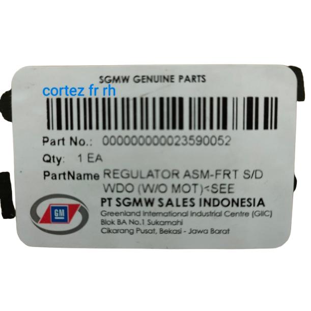 REGULATOR POWER WINDOW WULING CORTEZDEPAN KANAN FR RH 23590052