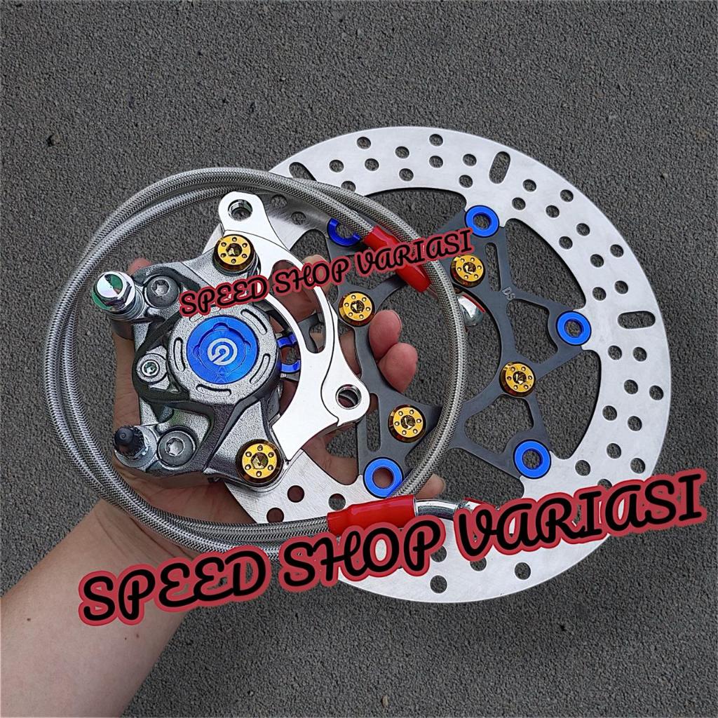 [PROMO] PAKET PIRINGAN DISC 220MM + KALIPER 2PISTON + SELANG REM 90CM + BAUT DISC + BREKET 220MM BEAT VARIO