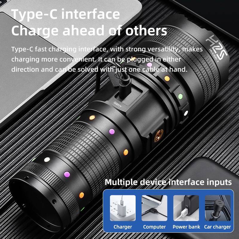 H2S Senter Hs-G301Y 3 Cahaya Led Laser 60W Alumunium Waterproof 5 Mode