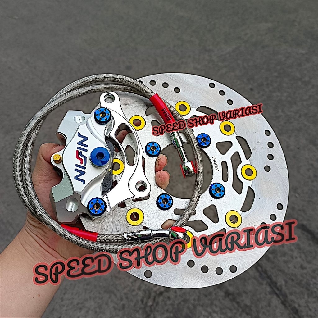 [PROMO] PAKET PIRINGAN DISC 220MM + KALIPER 2PISTON + SELANG REM 90CM + BAUT DISC + BREKET 220MM BEAT VARIO